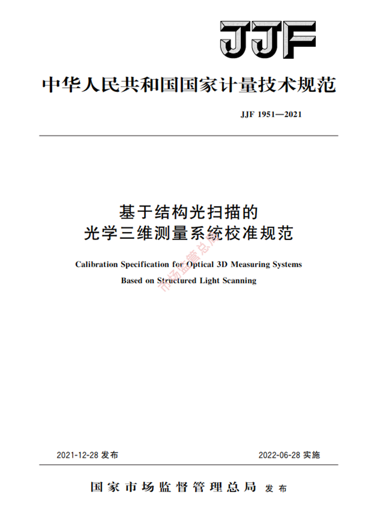 【仪表网 仪表标准】近日,由浙江省计量科学研究院参与起草的国家校准规范JJF1951—2021《基于结构光扫描的光学三维测量系统校准规范》,经国家市场监督管理总局批准发布,于今日(6月28日)正式实施。