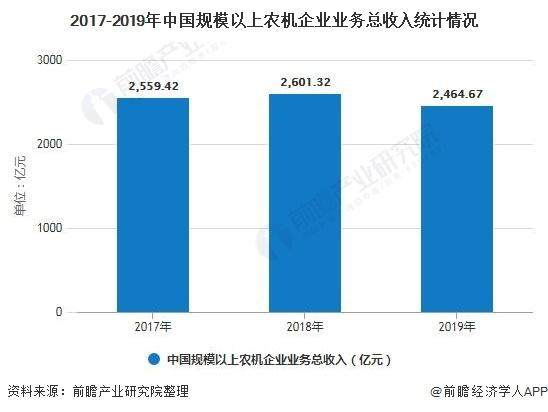近年来,我国积极出台政策,推动农业自动化的发展,大规模推动了对现代化农机产品的需求。2018年农机工业业务总收入为2601.32亿元,增长1.637%。在我国农机市场处于深度下行调整与转型升级并行的走势下,在我国农机市场下行调整的影响下,2019年,全国规模以上农机企业业务总收入为2464.67亿元,比上年同期下降了4.43%,出现负数增长。
