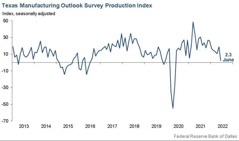 美国得克萨斯州达拉斯联储27日发布该州6月制造业前景调查数据(TMOS, Texas Manufacturing Outlook Survey),数据显示,6月份得州工厂活动增长急剧减速,需求急剧下降。
