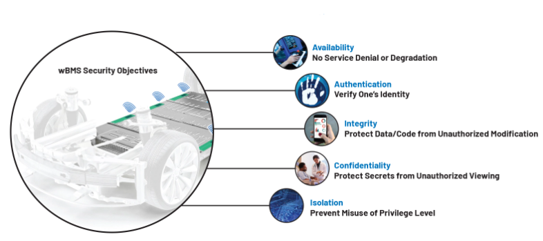 要实现 wBMS 提供的承诺,需要克服许多挑战。 wBMS 中使用的无线通信需要在汽车行驶时对干扰具有足够的鲁棒性,并且系统必须在所有条件下都是安全的。但是,仅靠稳健和安全的设计可能不足以对抗黑客——这就是系统安全发挥作用的地方。