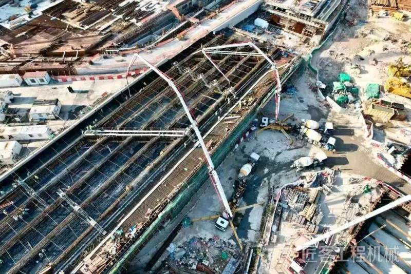在该项目建设中,徐工起重机、中大吨位装载机、摊铺机、混凝土设备等100余台成套化施工设备发挥着重要的作用,并创下了摊铺机8台连铺的壮观场面。