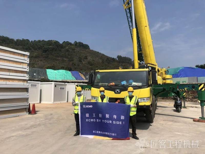 2月22日,徐工XCA220、XCT90、XCT60各吨位起重机团组于开工首日分别进入码头和方舱医院,XCA220在青衣码头接收内地经水路支援香港的抗疫物资,XCT90和XCT60昼夜不歇地吊运安装方舱医院设施。