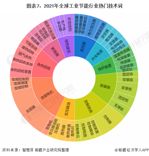 全球工业节能前十大热门技术词包括变频电机、余热回收、变压器、控制系统、绿色建筑等。进一步细分来看,工业节能技术热门词包括变频器、控制器、余热回收装置、节能系统、电力变压器等。具体情况如下: