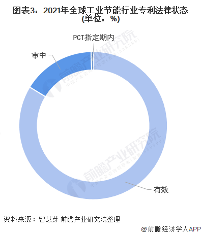 3)全球工业节能行业专利法律状态:“有效”专利数量最多