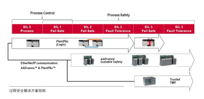 罗克韦尔自动化能够为机械设备、过程生产等提供全方位的安全解决方案,可以满足各种场合对 SIL2 和 SIL3 需求的解决方案: