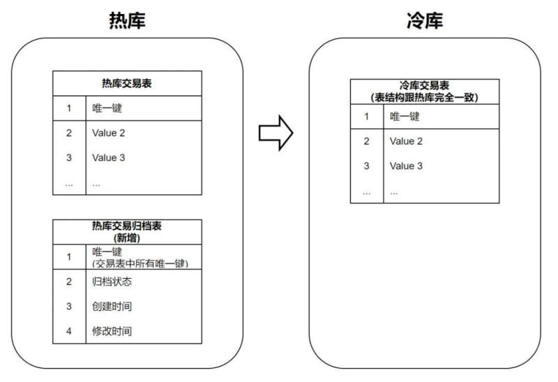 - 冷库插入: 先 insert 冷库成功后 再 insert 热库归档表