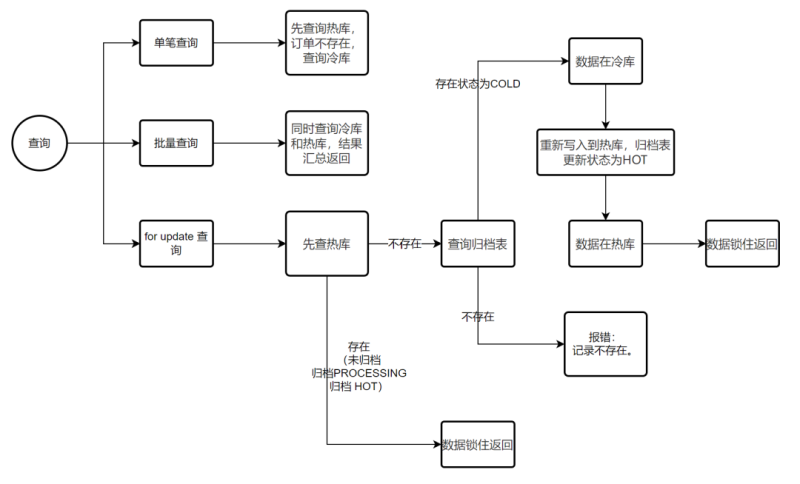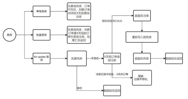 - 单笔查询:查询热库数据不存在时,不存在再次查询冷库(如果单号中可以判断订单日期,可再增加一层日期过滤,减少冷库查询)