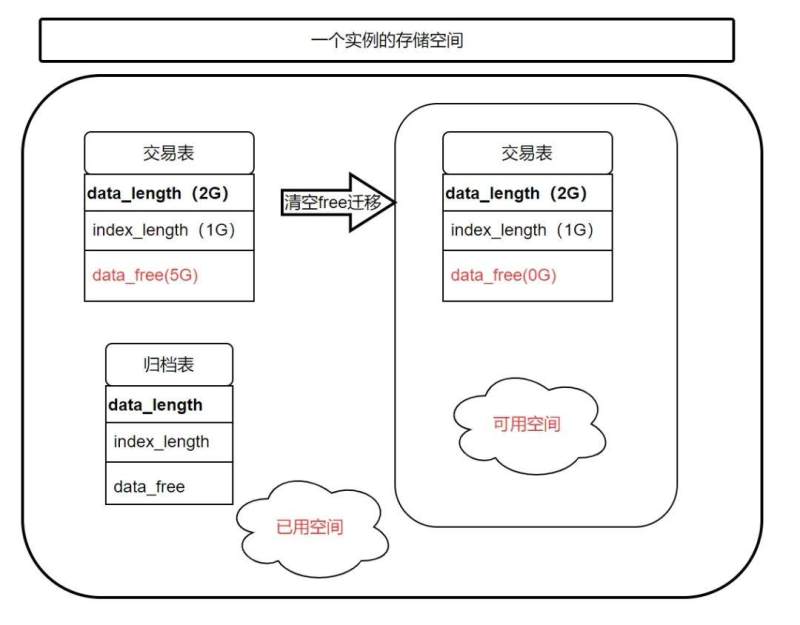 - 交易表释放的 datafree 存储空间无法提供给归档表使用,仅能交易表使用,需要不定期释放交易表的 datafree 空间。