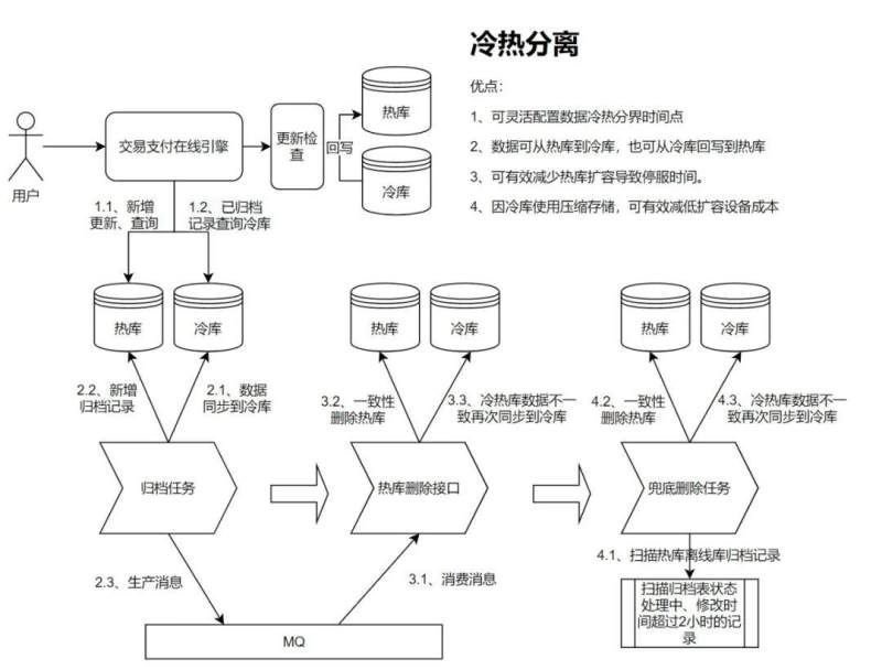 - 数据从冷库同步到热库时,操作归档表和交易表需保证在同一个是事务内完成,涉及到的查询必须使用写库。