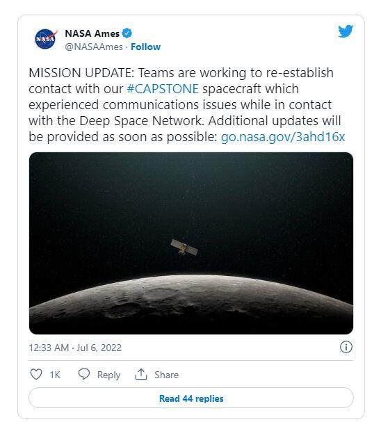 “在7月4日成功部署并开始航天器调试后,地月自主定位系统技术操作和导航实验(CAPSTONE)航天器在与深空网络联系时遇到了通信问题,”NASA周二在一份声明中表示。