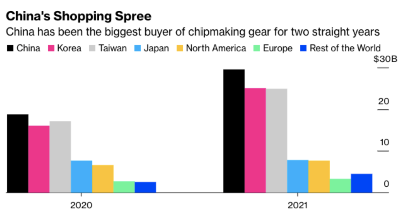 “光刻设备是中国在半导体生产方面最难更换的设备,”台湾经济研究所分析师 Johnson Wang 表示。“如果没有国外的深紫外光刻设备,中国芯片产业的发展可能会停滞不前。”