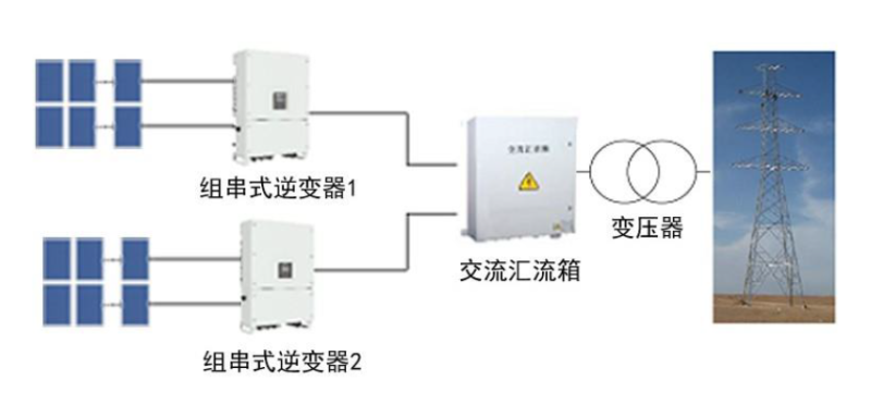集散式逆变器结合了大型集中式光伏逆变器的集中逆变优势和组串式光伏逆变器的分散MPPT跟踪优势,达到集中式逆变器低成本高可靠性,组串式逆变器的高发电量。集散式逆变器具有工程经验少、安全性及稳定性还需验证的缺点,应用于我国光伏“领跑者”示范基地。