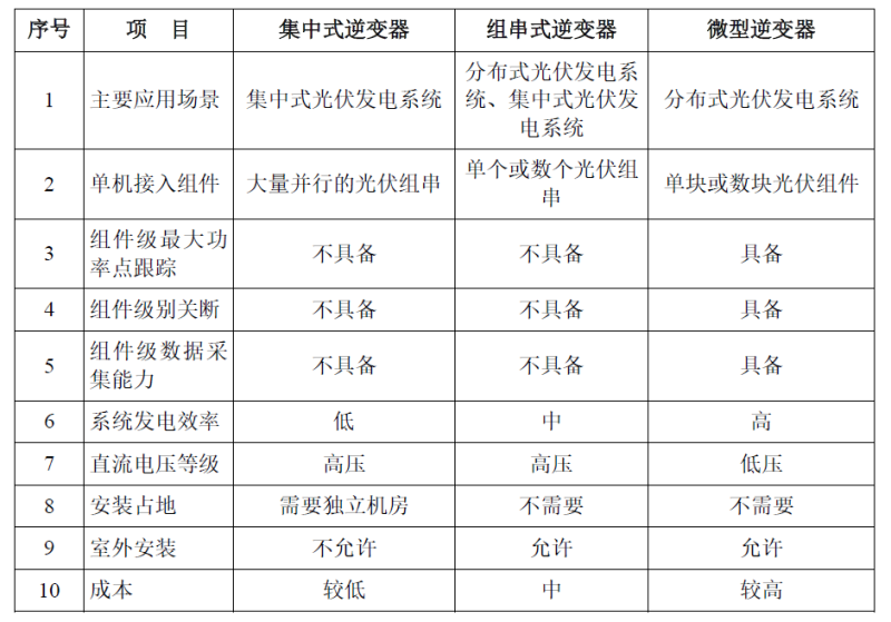 按照光伏逆变器的技术路线,可以将光伏逆变器分为集中式光伏逆变器、组串式光伏逆变器、集散式光伏逆变器和微型逆变器。