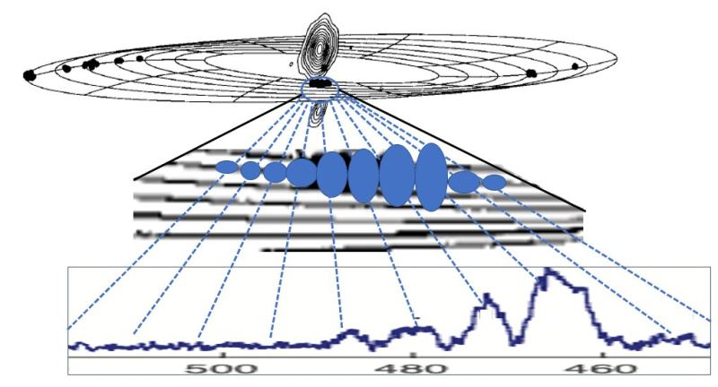 据介绍,自2014年,团队在3年多的时间里利用俄罗斯发射到空间的RadioAstron天文台以及地面大型射电望远镜组成的空地VLBI网,对一个距离地球约2100万光年名为NGC4258的漩涡星系开展了多次观测,最长的空地基线高达250,000公里(相当于约20倍地球直径),角分辨率达到11微角秒,是迄今最高分辨率的记录。在高分辨率下,科学家能够分辨出吸积盘中尺寸约60倍天文单位(1个天文单位是地球到太阳的距离,即149,598,000千米)的致密云团。观测发现,有脉泽辐射的云团分布在一个半径约为0.38光年的薄气体盘构成的吸积盘内,并随着气体盘的旋转而运动,几个云团距离星系中心的黑洞约170天文单位。当气体盘中含有水分子的气团漂移到射电喷流前面时,喷流为脉泽放大提供了背景输入光子,从而使得水分子受激放大而产生强大的水脉泽辐射。