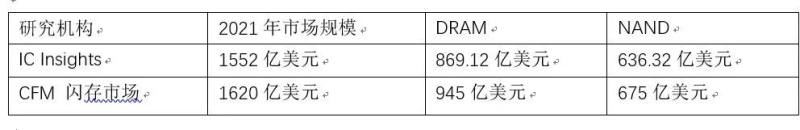 另外,根据CFM 闪存市场预计,2021年全球存储市场规模将达1620亿美元,增长29%,其中DRAM为945亿美元,NAND Flash为675亿美元。这两个调研机构的数据相近,相差100亿美元。