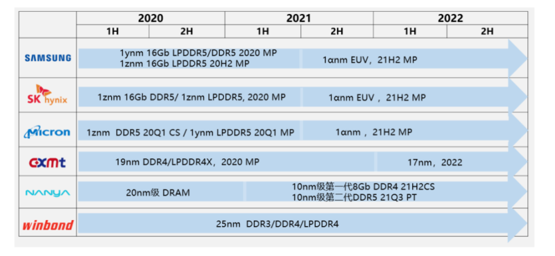 DRAM 方面,1znm 在2021年成为主力的DRAM生产技术,并将延续到2022 年。
