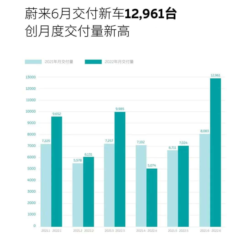 多条腿走路的蔚来,在新能源赛道逐渐走出一条自己的路。刚刚过去的六月,蔚来交上了有史以来最好的月度答卷,单月交付达12961台,同比增长60.3%。