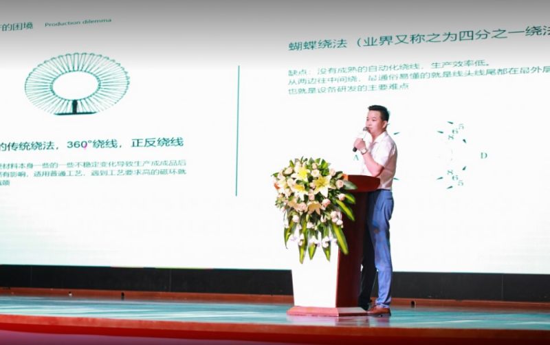 星特科技销售部总监曹永成分享了《磁环粗线自动化生产解决方案》。