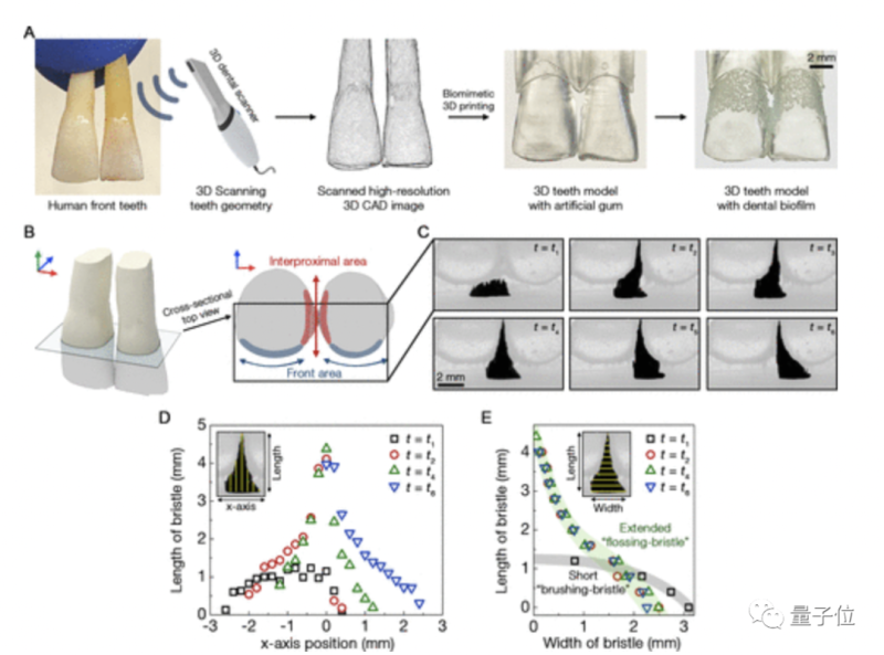 在之后的实验中,研究团队用 3D 打印复制了一个人类口腔结构,在上述实验的基础上,成功实现了 IONP 的“牙线”形态,在细菌集结的牙齿缝隙中起到清理作用。