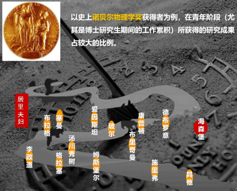 我们阅兵式大家看起来很整齐,但是你知不知道背后是什么?背后是艰苦的训练。领子上有一根针放在那里,头一歪这个针就要刺到头颈了,头一定要很正。背上盐都析出来了,头上放一块砖,头一歪砖就要掉下来了。这都是勤奋、辛勤的工作。所以一定要“千淘万路虽辛苦,吹尽狂沙始到金”。你要取得一定的成绩、一定的进步,你一定要付出自己的努力。阅兵式就非常整齐,背后就是勤奋、汗水。我们青年时期是最富有想象力、创造力的,要勤奋。很多得诺贝尔奖的人都是年轻时候得出来的,我让我的学生们查了一下,得诺贝尔奖有三分之一都是年轻时候的工作。比如这些人都是年轻时候的工作,很多就是他的博士论文以及博士论文后续的工作得到诺贝尔奖的。这就说明年轻人有非常大的创造力,加上勤奋工作,可以做出创新的工作。爱因斯坦1905年26岁的时候提出狭义相对论,光电效应、光的量子理论都是那一年提出来的。后面是引力波、广义相对论,也是30多岁建立的。引力波当时大家也很感兴趣,两个黑洞合并,我们在地球上观测到了引力波。这是以色列的大学生做的快递车子,也是很有创新性的。荷兰他们大学生做的太阳能汽车,可以续航1000多公里,也是很有创新性的。我们从小要热爱科学,树立科学的素养、善于发现的眼睛、扎实的基础知识、浓厚的研究兴趣、出众的动手能力、坚韧的做事态度。不要像这个人,他要挖井,挖了不行换个地方,再挖马上下面就有水了,又换一个地方去挖了,做事没有做到底。我们一定要有坚韧的做事态度,不要像这个人一样三天打鱼两天晒网。我们还要传承传统美德,我们中国古代有很多思想巨匠,老子、孔子、庄子、孟子、墨子、孙子、韩非子等等,他们都有非常好的中国的传统哲学思想、科学思想、为人之道、处事之道、学问之道。我们要好好地传承。比如这张照片是廖昌永,有一次在北京开会碰到他。廖昌永就有传统的美德,他第一次出名的时候,人家给他献花、颁奖,主持人说请廖昌永上来拍个照,找不到廖昌永了,他到哪里去了?他跑到台下去了,找他的老师周小燕,他说这个鲜花和奖牌应该是属于你的。他就传承了一种中华民族的传统美德,我们要勤奋、实事求是,传承中华民族的优良美德。我们既要得到金子、得到知识,我们更要培养一种方法,点石成金的手指,我们还要培养一种精神,金子般的心灵。我们做研究做学问,第一个层次是成果,第二个层次是方法,第三个层次是精神。我们要勤奋踏实培养科学精神,我们要渐进积累实现创新跨越。要培养科技创新的素质,这个素质有很多,我认为八个字非常重要“勤奋、好奇、渐进、远志”。勤奋就是要刻苦踏实,好奇就是要热爱科学、寻根究底,渐进就是要循序渐进、积累创新,远志就是要树立远大的志向。所以我们要培育飞翔的潜能,培育飞翔的潜能有一个秘诀,那就是练就健康体魄、汲取外界养料、凝聚驱动力量、修炼内在素质、融入时代潮流。
