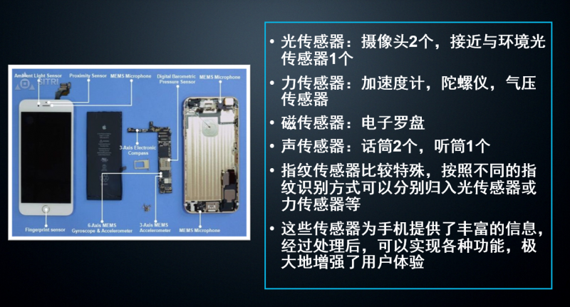 主持人:我们都知道褚君浩院士是科研界的科普达人,今天褚君浩院士也将为我们带来传感器和智能时代为题的报告活动,接下来有请褚君浩院士继续今天的报告活动。褚君浩:好的,观众朋友大家好,今天我给大家做一个科普报告。我这个报告的题目叫“传感器和智能时代”。我讲三个方面的内容,第一方面:感知自然信息。第二方面:迎接智能时代。第三方面:培育飞翔的潜能。先说第一方面,感知自然信息,就是传感器。首先提个问题,传感器是什么?我们知道人有五官,眼睛、耳朵、鼻子、舌头、皮肤,传感器就是做成一个器件,但它的功能就是来代替我们的眼睛看,代替我们的耳朵听,代替我们的鼻子闻,代替我们的舌头尝,代替我们的皮肤感觉。传感器在我们日常生活当中是无所不在的,如果你注意一下周围,我们跑到洗手间,我们把手放到水龙头下面,水就会自动下来,就有传感器装在水龙头下方。有的时候跑到一个商店或者房间,它会叮当一下,进去了以后灯就开了,这些也都是传感器。在日常生活当中如果你注意一下,传感器是无所不在的。今天我提出一个问题,你们回家找找看,在你们身边、生活当中看到过哪些传感器,你发现在我们的生活当中、社会当中有哪些是传感器。比如现在先进的马桶盖,里面有力传感器、热传感器、光传感器。查酒驾(的工具),里面就有很多烟雾探测器、气体传感器。还有电子血压计、人体感应灯、触摸屏,都有很多传感器在里面。有光传感器、力传感器。我们传感器当中如果找一下,就会发现家庭里面相机、手机、游戏机,包括智能电视、冰箱、洗衣机空调里面都有,你们可以回家找找看在身边哪些有传感器的应用。但是传感器最普遍的应用是智能手机,而且用得也最多。如果把智能手机打开,里面有很多传感器,有摄像头,有各种各样的传感器,加速度传感器、陀螺仪,还有摇一摇,都是传感器在里面起作用,你们可以去研究研究。严格来说去分析一下,可以找到光传感器摄像头,力传感器加速度计、陀螺仪,磁传感器、声音传感器、指纹传感器等等,这些传感器为我们手机功能提供了非常重要的器件。现在在人体健康里面比如体检,也有很多传感器:做B超、CT,各种检查。现在人家还在研究在人体里面植入一些芯片来探测你身体的健康状况,有很多也都是传感器的问题。在公共安全检测、家庭安全防护也都有很多传感器的应用。水资源、能源系统、环境也都有很多传感器,这些传感器可以提供水、环境、空气的情况。传感器走进我们的生活,在工业农业生产、科技活动、日常生活、国防科技当中。