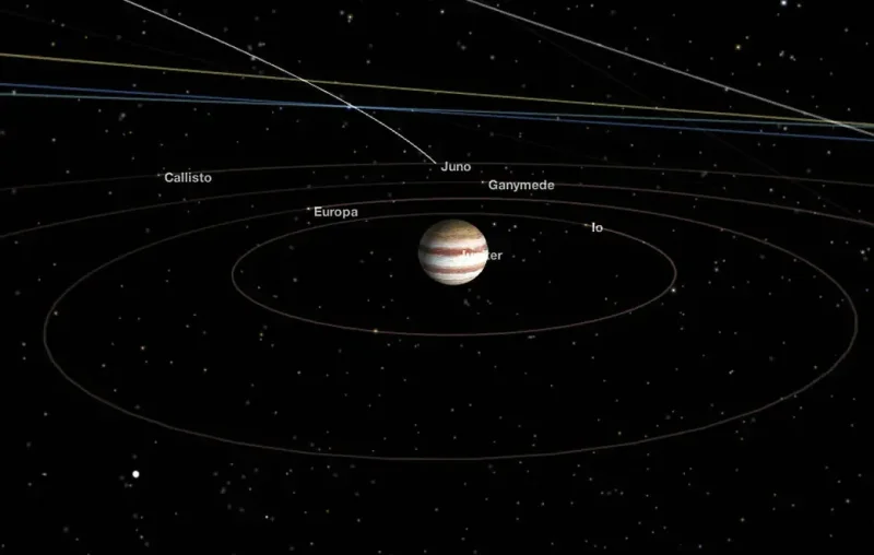 木星是来自太阳的第五颗行星,在火星和土星之间运行。它是一个气态巨行星,质量超过地球的 317 倍,是迄今为止太阳系中质量最大的行星。作为一个气态巨行星,木星主要由氢和氦组成,其中大部分处于气态。这颗行星可能有一个岩石核心,但它的绝大部分半径都被金属氢、液态氢和它的大气层所占据。