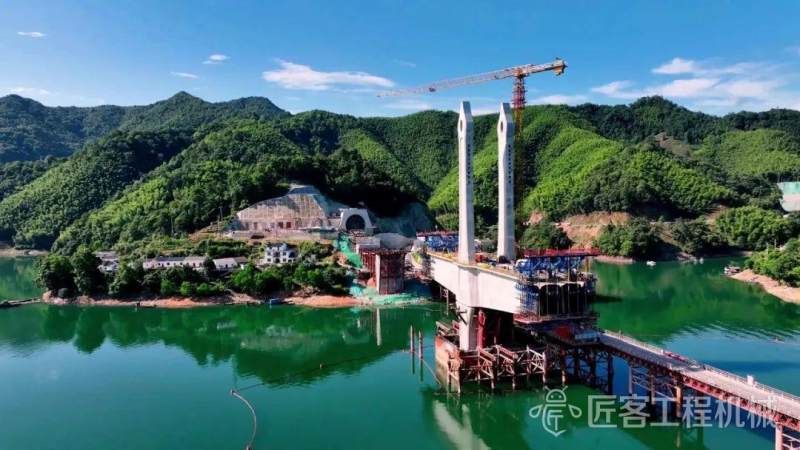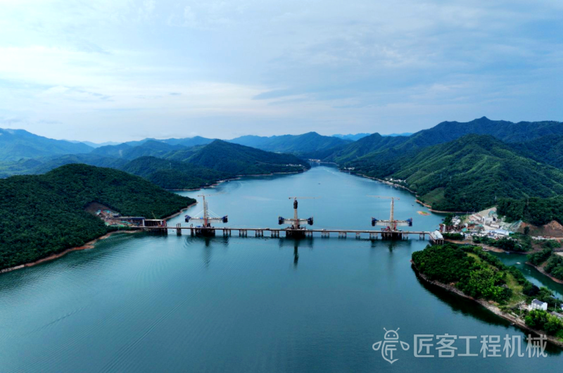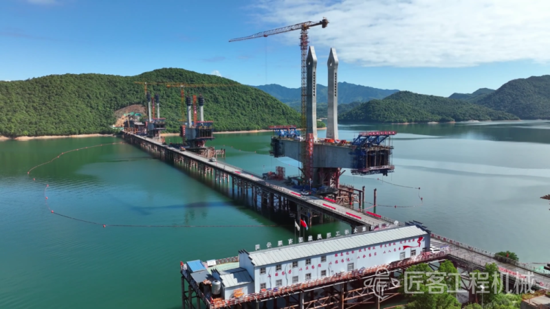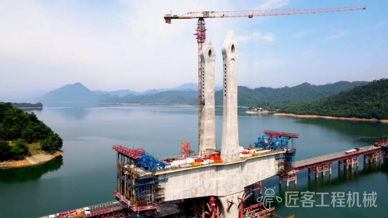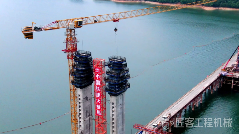 徐工塔机携手中国铁建大桥局,助力国内跨度最大高速铁路多塔矮塔斜拉桥太平湖特大桥。