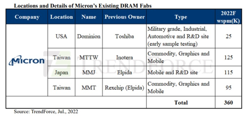 根据存储器大厂美光科技12 日晚间于官网上的公告,表示因为地区的恶劣天气,旗下位于日本广岛的DRAM 工厂,于2022 年7 月8 日星期五期间经历了电力中断情况,所有美光团队的成员都很安全,但其损失影响目前仍在评估当中。对此,市场相关机构表示,因停电时间短暂,加上有不间断电源系统的支援,预期对产能的冲击有限,亦无法扭转因供给过剩,使得价格持续下跌的走势。美光在官网公告中表示,临时的停电工厂短暂停止生产。但是,目前运营已经恢复到较低的水准,并将在下周继续恢复产能。另外,当前美光正在评估停电发生时,正在产线生产中的晶圆,以确定它们是否符合公司严格的品质标准。美光预计,2022 财年第四季和2023 财年第一季的生产力和晶圆报废都会造成损失和相关成本影响。美光还进一步指出,目前正在评估对近期供应的影响,并正在努力利用现有库存,以及其剩余的DRAM 工厂产线生产,以满足客户的关键要求。不过,针对停电造成的影响,市场研究及调查机构TrendForce 则是在研究报告中表示,美光位于日本广岛的DRAM 厂于2022 年7 月8 日发生跳电意外,跳电时间约为5~10 分钟。根据TrendForce 的理解, 跳电发生时机台亦同时启动不间断电源系统(UPS)。但因压降的影响,机台需要重启与检查。然而,因跳电时间短暂,研判受影响的产能有限。根据TrendForce的资料指出,以2022 年第三季产能来看,该厂的月产能为一个月11.5万片,占美光月产能的30%。而以全球月产能159.2万片计算,投片占比约为7%。分析该厂投片信息,主要投产制程为1Z 纳米制程,其投片比重为50% 以上。其次为1Y 纳米制程,占比亦有接近35%。分析该厂现况,主要为R&D 的研发中心,下一代制程1β 纳米制程亦将优先于该厂内投产。而观察其产品类别,现阶段以产出智能型手机相关的行动型DRAM为主。观察现阶段DRAM市况,年初以来俄乌冲突、通涨接连影响全球消费性电子需求,使得各原厂的存储器库存皆位于较高水位。由于该跳电对产能的影响规模不大,美光方面亦能使用其库存来满足客户端的需求,故对DRAM 供需市场并没有造成冲击。同时TrendForce 亦观察到,对市况反应即时的现货市场,在跳电发生至今,并未有需求增加,或是发生客户急单的市场反应,价格端完全没有发出止跌讯号,故预估此次跳电将难以扭转存储器供过于求的现况。TrendForce 将维持原来对下半年的价格预估,意即2022 年第三季均价季跌约10%,第四季均价季跌0~5% 的趋势。