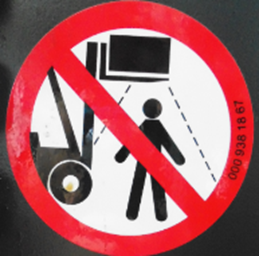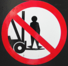 ■严禁在起升状态下的货叉底下行走