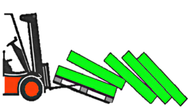 ■禁止单叉作业或用货叉顶物、拉物