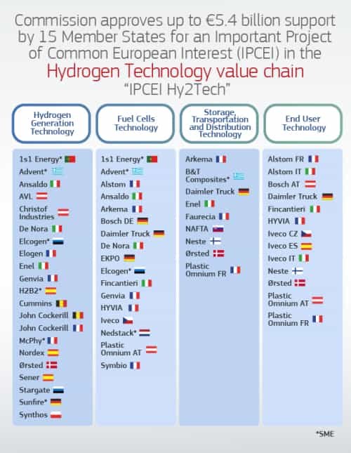 欧盟委员会根据欧盟国家援助规则批准了一个重要的欧洲共同利益项目 (IPCEI),以支持氢技术价值链中的研究和创新以及首次工业部署。该项目名为“IPCEI Hy2Tech”,由奥地利、比利时、捷克、丹麦、爱沙尼亚、芬兰、法国、德国、希腊、意大利、荷兰、波兰、葡萄牙、斯洛伐克和西班牙等 15 个成员国联合编制和通报。