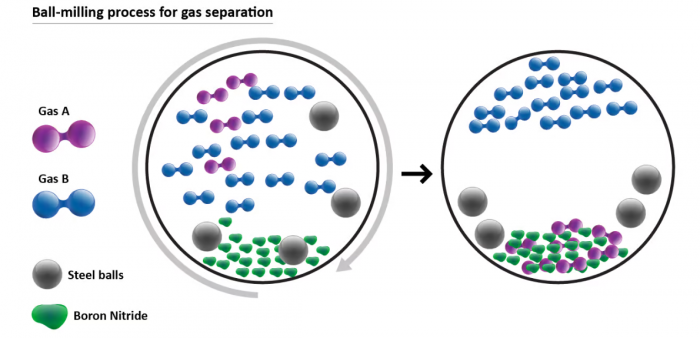 该团队已经证明,用精确压力水平的某些气体研磨一定数量的某些粉末可以触发机械化学反应,将气体吸收到粉末中并储存在那里,给你一个本质上是固态的存储介质,可以在室温下安全地保存气体,直到它们被需要。通过将粉末加热到一定程度,气体可以根据需要被释放。