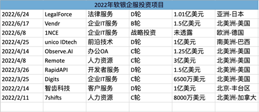 的确,我们确实在最近的融资消息中,发现了很多海外企服公司的身影。其中最典型的应该是软银愿景基金了,从去年开始,其在企服行业的布局重点就转到了海外。截止到目前,软银愿景基金今年只在中国投出了一个企服项目——智齿科技。