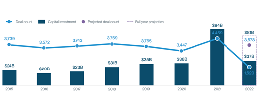 报告显示,早期公司的并购活动增加了10%,其中 23% 的收购发生在种子期。尽管宏观经济因素和加强的监管审查可能会发挥作用,但对于渴望低价收购性价比高公司的收购方而言,没有迹象表明并购活动会放缓。