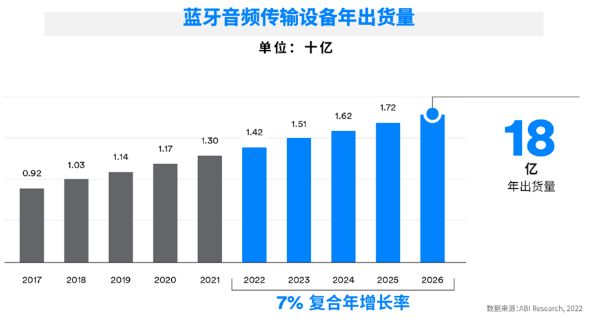 蓝牙音频传输设备年出货量(图源:ABI Research)