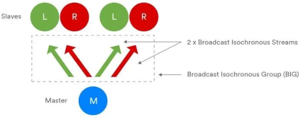 同时,LE Audio同步通道定义了一个有时间依赖的数据的传输通道和传输策略。首先是一个对于多接收方同步获取数据的机制;其次是定义了发送方在允许的时间外丢弃数据,从而保证接收方收取的数据满足时效要求。这不仅保证蓝牙可以在低功耗的情况下解决延迟问题,LE Audio还可以向多个耳机同时传输,实现一对多的音频传输。