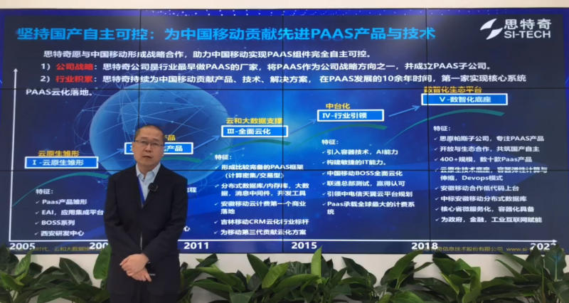 思特奇首席产品运营官张勇在直播分享中表示,中国移动作为建设网络强国、数字中国、智慧社会主力军,致力于通过5G连接+算力网络+智慧中台能力三大新型信息服务体系,推动网络升级、提升网络质量、服务社会民生。思特奇深耕ICT领域27年,是中国移动重要合作伙伴。数字新时代,思特奇掌握系统思维,秉承工匠精神,以成为真敏捷云原生的领军企业为目标,打造移动行业最佳实践标杆。