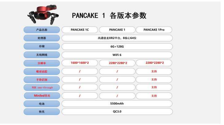 PANCAKE 1C 单眼分变率1600x1600 1058PPI,首发价2999元;PANCAKE 1单眼分辨率2280x2280 1512PPI,首发价3999元;PANCAKE 1Pro作为PANCAKE 1的升级版本,分辨率相同,同时支持眼球追踪,手势识别、RGB see-through、miniled背光功能,预计在年底上市发售价格目前暂未透露。PANCAKE 1C和PANCAKE 1将在8月26日开启预售,连续打卡320天,全额返还购机款。三款机型其余配置相同,主推机型PANCKE 1。