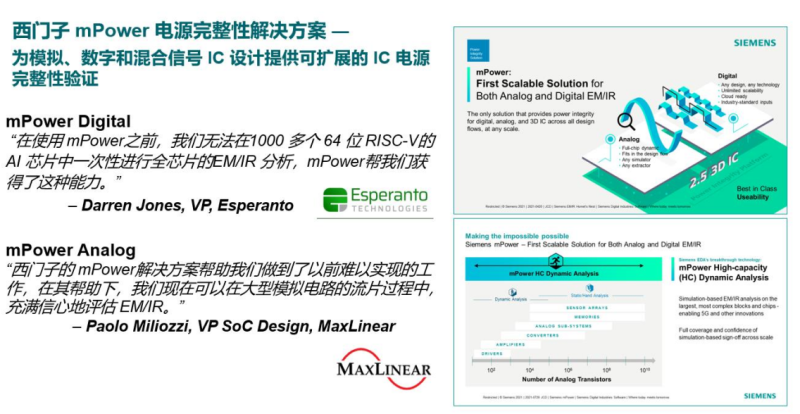 李立基以西门子EDA较新的三个典型工具代表,解读了公司的三个发展方向。其中有新推出的专注混合信号验证的Symphony Pro,有去年推出的电源完整性分析工具mPower以及2019年推出的自动驾驶硅前验证环境PAVE360。