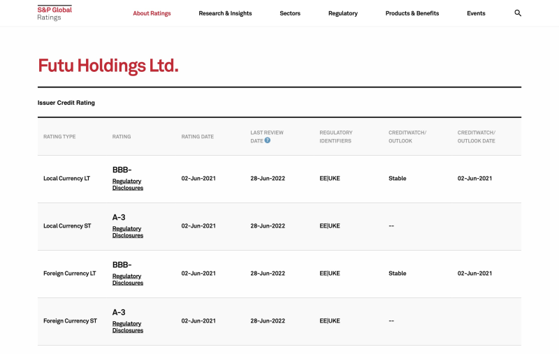 在持续波动的市场环境下,富途仍保持了标普BBB-的投资级评级,表明以标普为代表的国际主流评级机构对富途经营状况的认可。继去年富途成为第一家独立获得标普投资级“BBB-”评级的在港券商,标普今年再度维持了对富途的投资级评级。