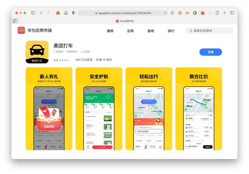 目前美团打车已经在华为应用市场上架,更新时间显示为 2021 年 7 月 9 日。不过截至发稿,在其他如苹果 App Store、小米应用商店中,美团打车应用似乎还没有上架。