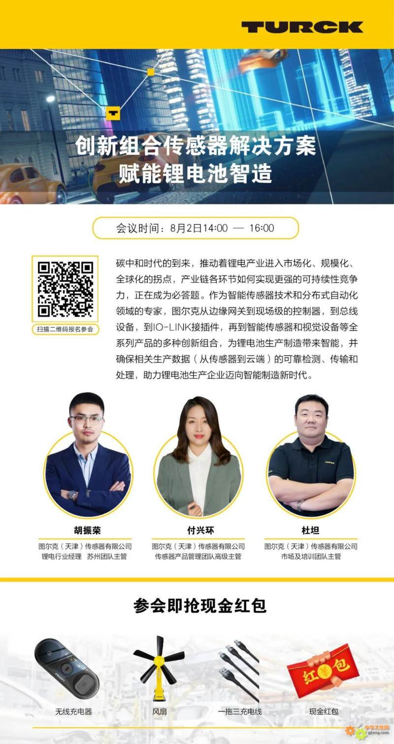 2022年8月2日,14:00-16:00 《创新组合传感器解决方案 赋能锂电池智造》将如期举行,届时,我们将助力锂电池生产企业迈向智能制造新时代,干货满满,期待您的参与!