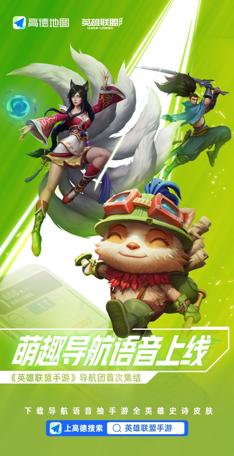 近日,高德地图与《英雄联盟手游》达成合作,双方共同推出了“萌趣导航语音”,由《英雄联盟手游》角色提莫、亚索及阿狸组成的“萌趣导航团”也正式亮相。即日起,用户在高德地图 App 上搜索“英雄联盟手游”,就能下载体验三位人气英雄极具辨识度的导航语音包。