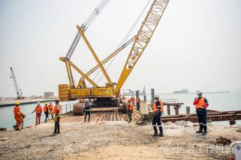 大西洋几内亚湾畔,热火朝天、机器轰鸣,XGC400-I履带起重机正建设通往尼日利亚的“世界之窗”西非区域最大的深水港之一莱基港。