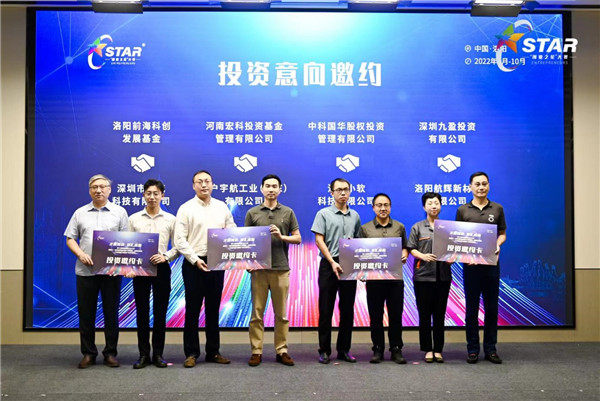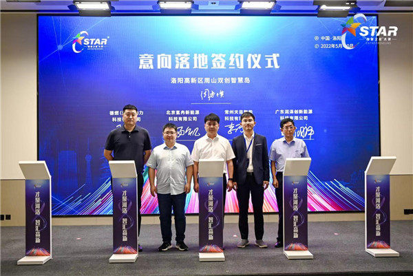 为更好地促进大赛项目成长,夯实大赛创新成果转化,大赛组委会与多家投资机构保持深度合作和紧密沟通,不少参赛项目拿到了后轮融资。颁奖仪式现场,洛阳前海科创发展基金与深圳市暗流科技有限公司;河南宏科投资基金管理有限公司与万户宇航工业(山东)有限公司;中科国华股权投资管理有限公司与洛阳小软科技有限公司;九盈投资与洛阳航辉新材料有限公司一对一结对,投资机构向项目颁发投资邀约卡。洛阳创业之星大赛作为具有全国影响力的赛事活动品牌,为洛阳市引进外地优质项目提供了平台,今年也有不少优秀项目通过大赛与洛阳结缘。德燃(浙江)动力科技有限公司、北京氢冉新能源科技有限公司、常州天目智能科技有限公司、广东润泽创新能源科技有限公司与洛阳高新区周山双创智慧岛签订落地意向协议,为本次大赛带来了丰硕的成果。