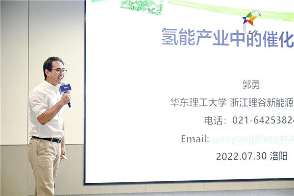 在颁奖仪式上洛阳申龙新能源汽车有限公司董事长、总经理苏国珍,四川亚联高科技股份有限公司董事长王业勤,理谷新能源董事长郭勇分别围绕“零碳引领,氢起未来”“制加一体化站是降低氢气成本的重要途径之一”“氢能产业中的催化技术应用”主题进行了精彩分享。