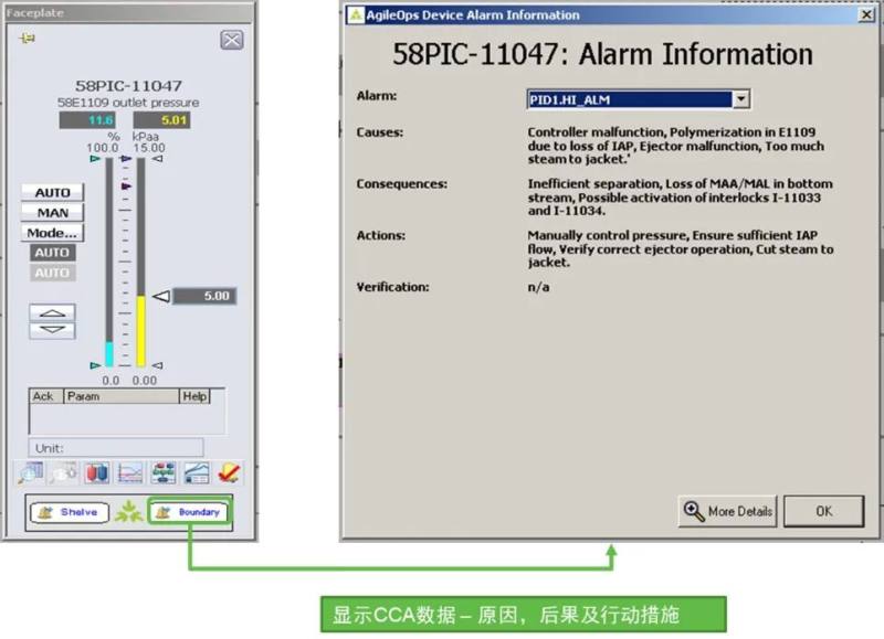 - 借助DCS操作画面为操作员提供过程操作边界的报警帮助(原因、后果和措施)。
