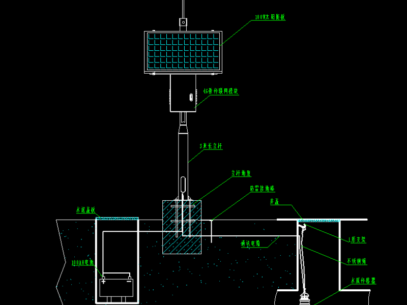 太阳能供电:100W太阳能电池板;铅酸电池12V 30AH