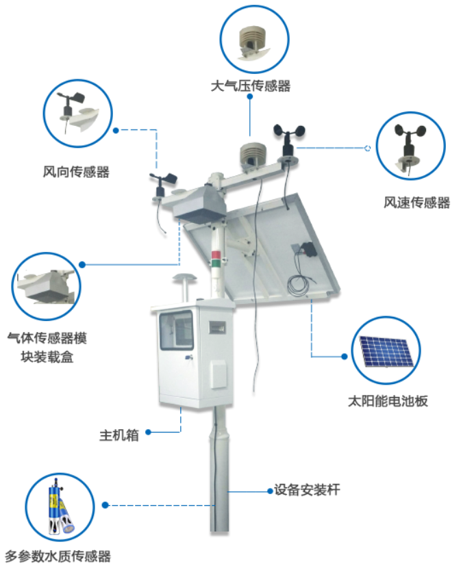 多参数气象监测系统是一个功能强大的环境数据采集处理系统,它包含了温度、湿度、露点、光照强度、光合有效辐射、气体监测、水质监测、风速、风向、雨量、土壤温度、土壤水分、土壤盐分、水分蒸发、大气压、粉尘颗粒物、雨量等环境数据的采集与处理功能,广泛应用于农田、林场、养殖场等农林生产、科研部门。根据用户具体需求,本系统监测参数可以容易自由组合。