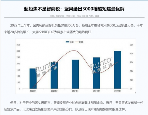 投影时代最新的一篇文章《超短焦不是智商税:坚果给出3000档超短焦最优解》其实已经很好地解答了这一问题。